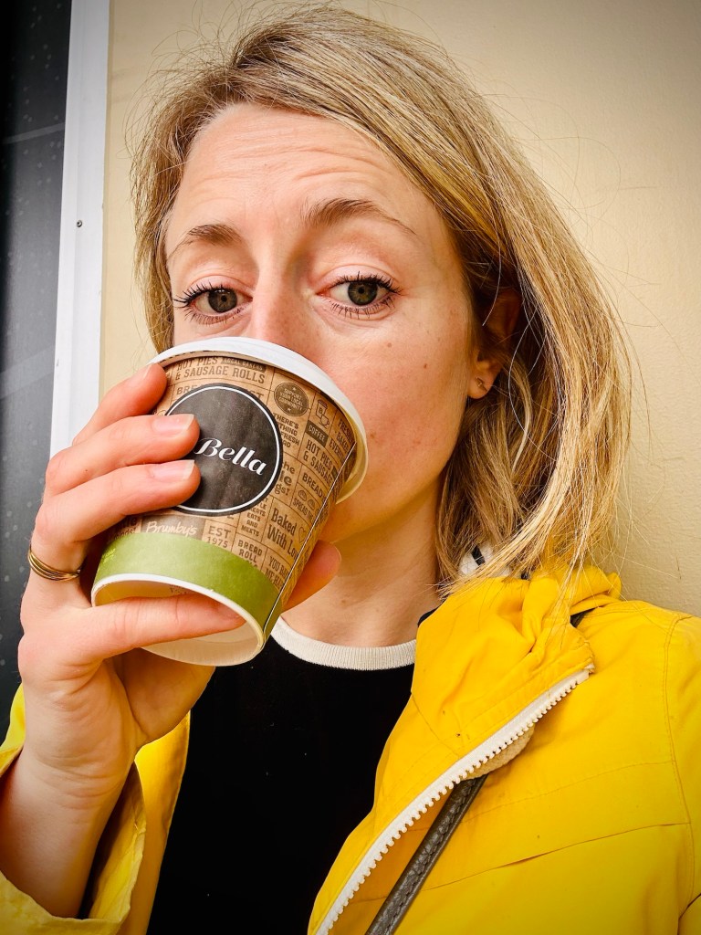 I grabbed a chocolate croissant and Michael had a smoked salmon bagel and we sat down on a big bench in the high street where lots of people where coming and going. A really nice atmosphere there, despite the weather being less than great for this time of year.