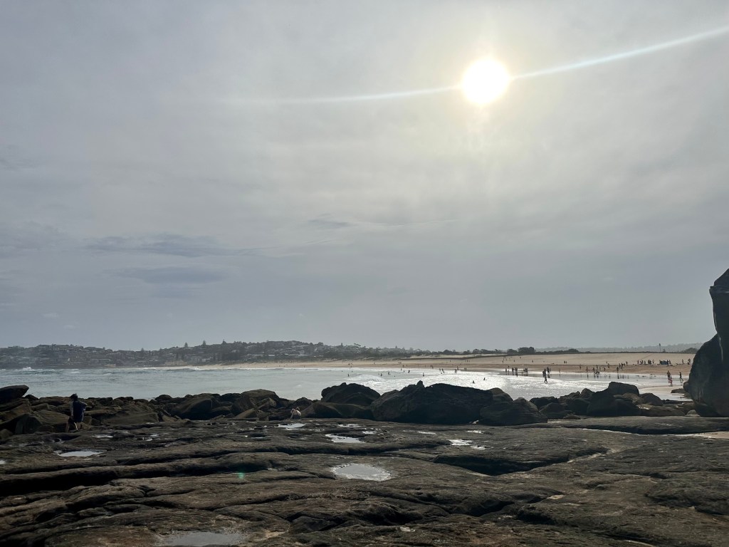 We then moved and sat up by the rocks at the end of the beach by the sea pool, which is filled by the overflow of the waves, but doesn’t have any waves itself or sharks for that matter…