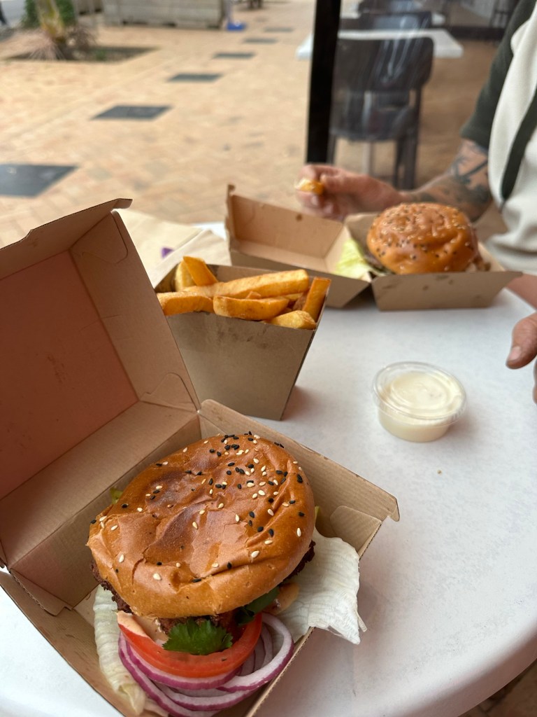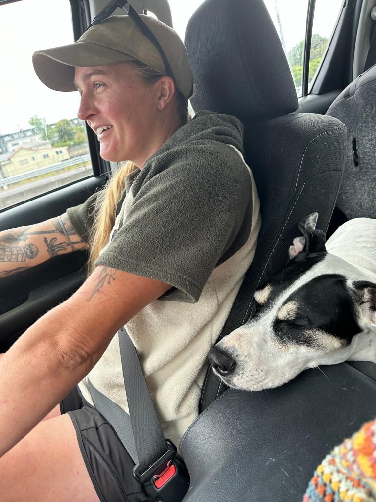 We found her car… with Vader (dog) in the back – yay! And then we went to Orewa, with the hope of getting some food and eating it on the beach, but Auckland was doing a UK spring impression and had gone from sunshine to rain, so instead we just got some tasty chicken burgers and ate them under the cover of an umbrella and admired the sad-looking grey beach from afar (150 metres). Another time!