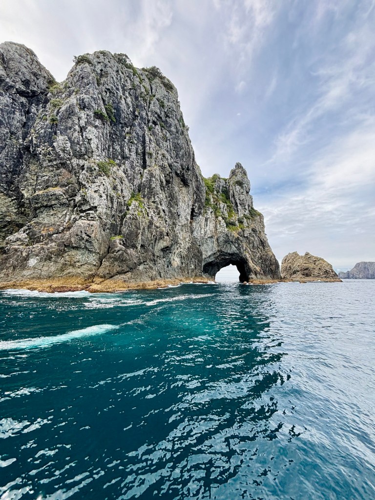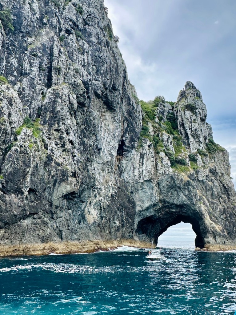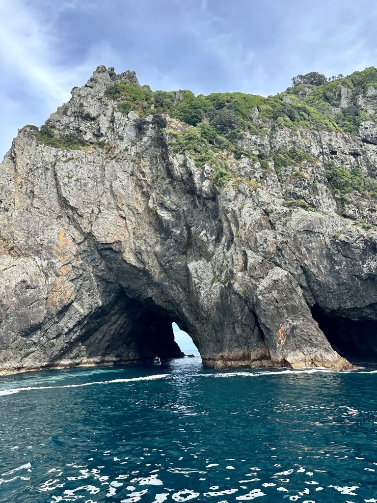 She also mentioned that her Māori/Iwi ancestors believed that if you passed through the hole and a drop of water fell on you as you went through, then it was good luck. That said… if it didn’t happen on the first crossing, they would sail back and forth again until they felt that blessed drop.