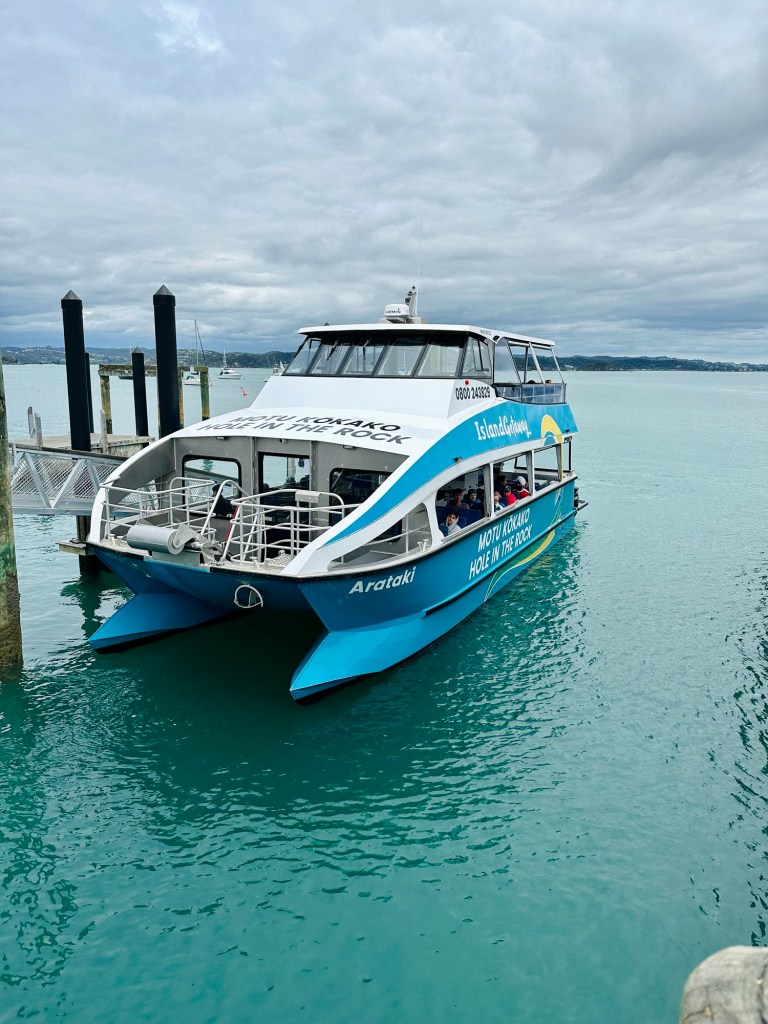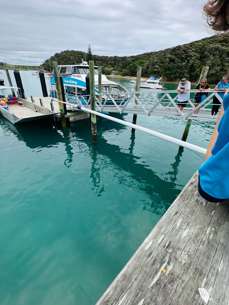 After a slight hold-up waiting for coffees and trying to find somewhere to park in Russell, which was busy due to a swimming event, we scooted down the jetty to the boat, which was patiently waiting for us. We were only 1 minute late, if that, but they’d still called us to see if we were still coming… oops!