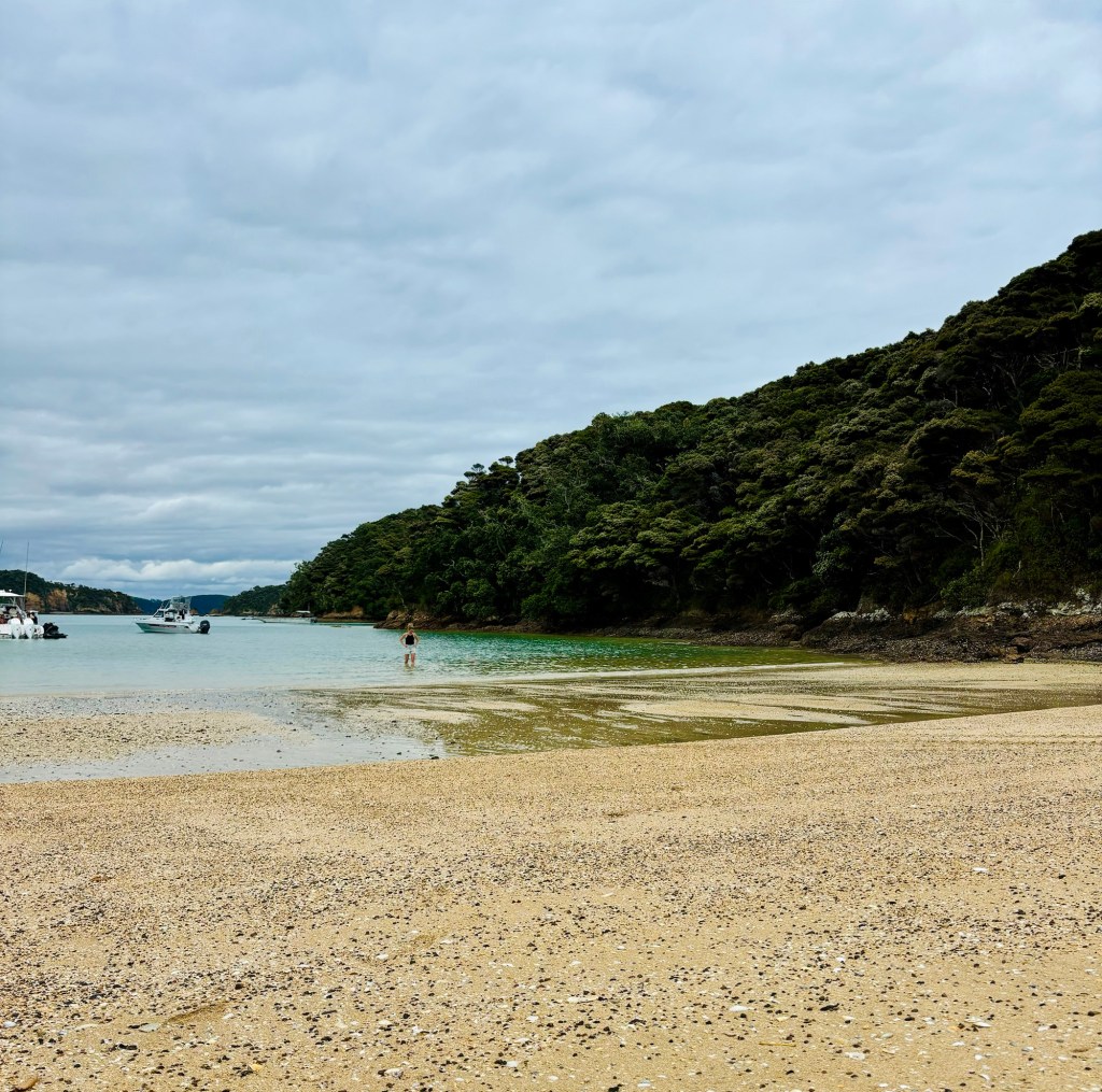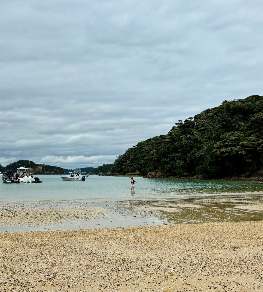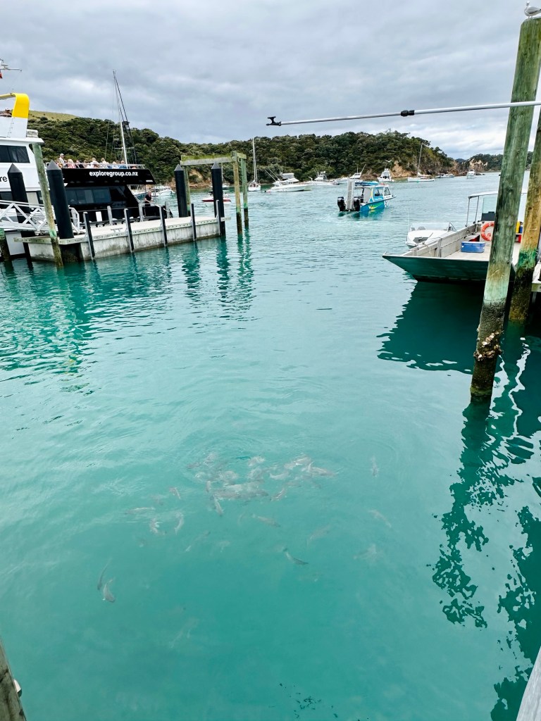 Our next stop was Urupukapuka Island, where we were given an hour to explore the island before we had to be back on the jetty, where they’d be feeding the fish at 12:30. I was keen to snorkel and had brought my stuff, but there was a boat festival called Sip & Sound where local boats could moor up by the beach and listen to the DJ. There was a busy cafe facing the bay, where many people were sat and anticipating the festival.
