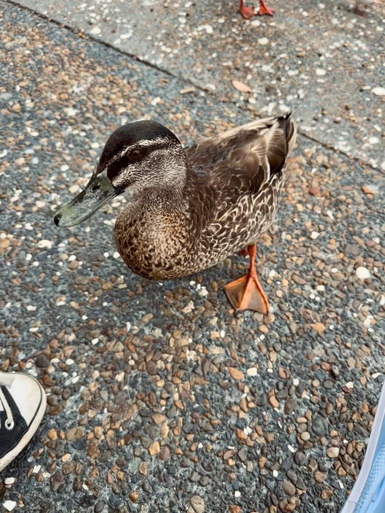 As we sat down, we were soon joined by curious seagulls and various other birds who were only too happy to help Anneke with her generous toastie portion.