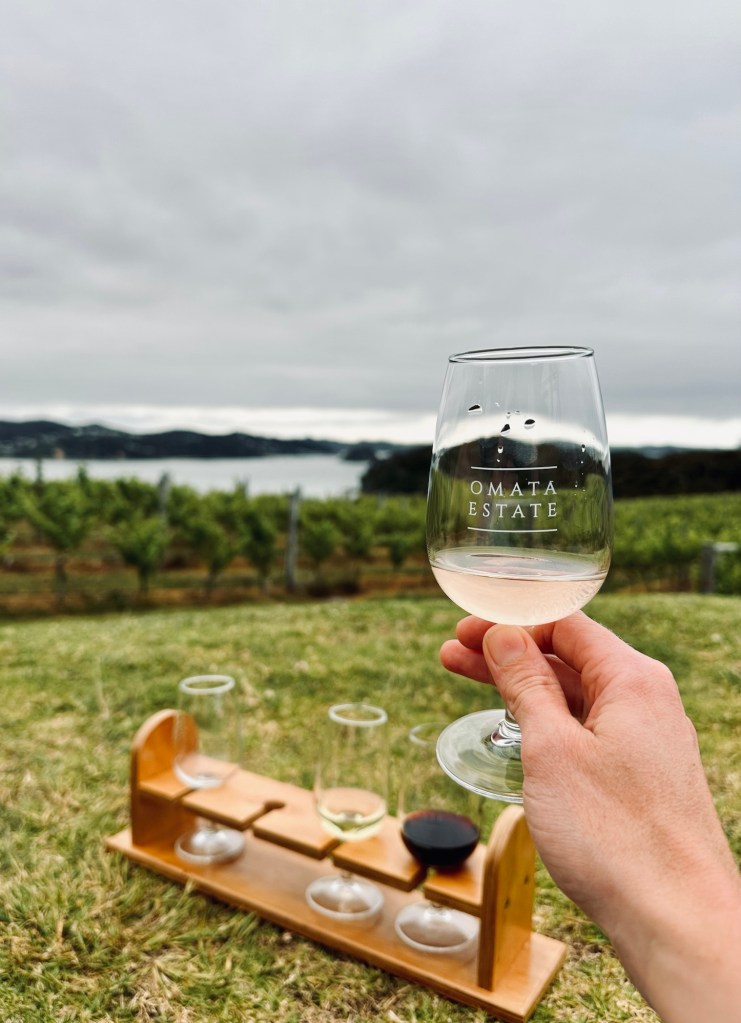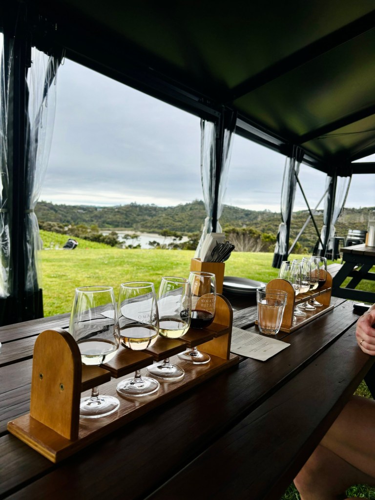 It was just after 2pm at this point, and we felt it was about time to sample the local produce up the road. I’d heard that Omata Estate was a good place to do a wine tasting and we’d practically passed it on our way into town, so it seemed rude not to…
