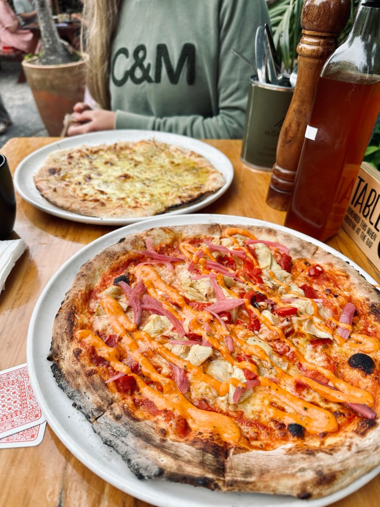 We felt a little underdressed as we pulled up, but that didn’t stop us, and in fact the staff were very friendly and showed us to a picnic table in their lovely outdoor covered area.