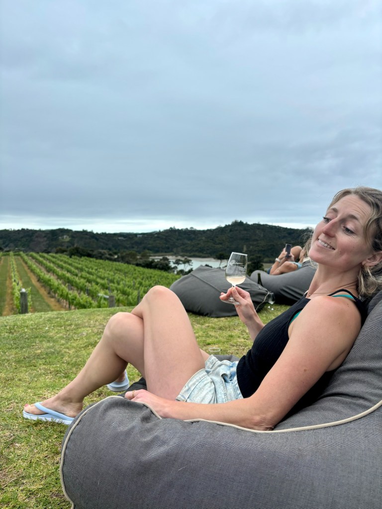 We each got a tasting of four wines – a Pinot gris, a rose, a Chardonnay and a Syrah. After we’d drunk the first one, the bean bags we’d been eyeing up in front of us became free and we pounced at the opportunity to sit on them.