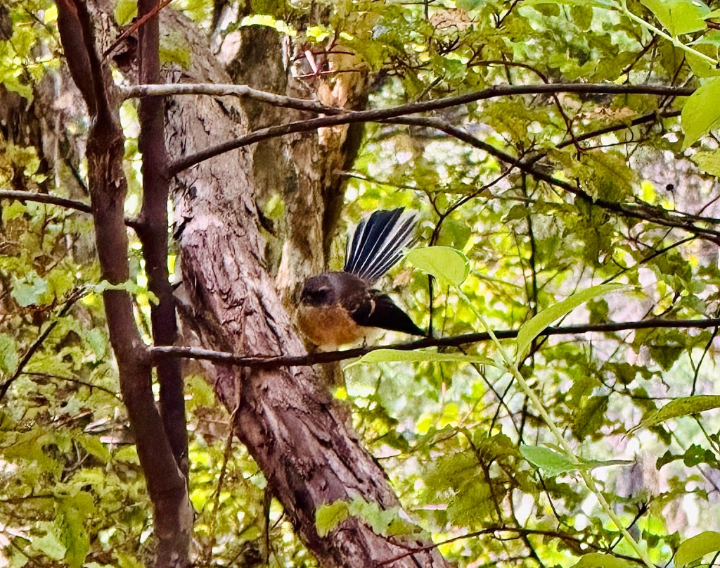 There are several walks you can do around the park of varying lengths, but because we were due to pick up Vader by 4pm and it was already 2:30pm, we decided to walk along the ‘eco trail’. Despite being able to hear lots of different birds, they were hard to see among the thick trees, but we did spot pukeko, fantails, tui, bellbirds, New Zealand pigeon (huge – the size of a buzzard) and possibly a whitehead popokatea.