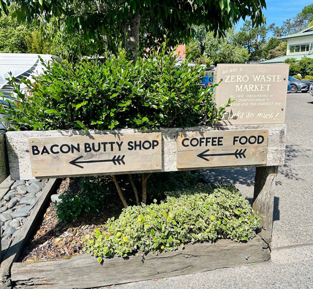 Since our eco trail had been cut short by the car key drama, we had time for a quick stop in Matakana, which is somewhere Anneke had taken me back in 2012. It’s a cute little village which now hosts a zero-waste farmer’s market every Saturday and has lots of nice independent shops (including a bacon butty cafe) and a laid-back but tidy feel to it.