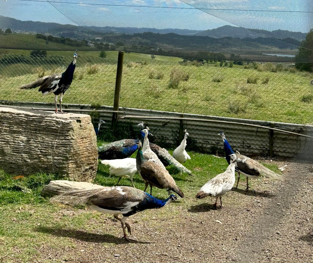 Dave and Vanessa’s daughter dropped off her son for Vanessa to take to school with Ari, and we figured if there was going to be a mass exodus from the house, we might as well make a move too. Anneke was itching to see her old bird friends that she’d looked after and reared a few years previous, and the enclosures were only at the end of the garden, so we walked across and had a look around.