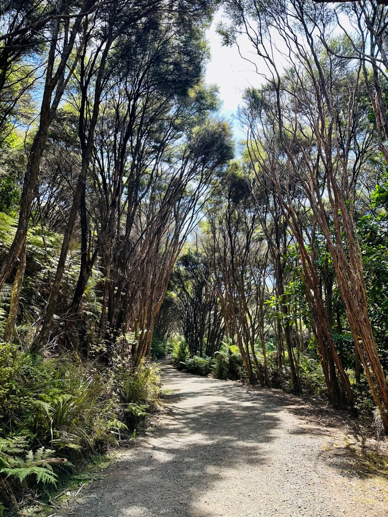 We were really keen to see a kaka or a takahe, which are fairly big (chicken-sized) flightless birds, and we got hopeful at one point because we heard rustling in the undergrowth and waited to see if it would poke its head out. Alas, we soon saw a rabbit hopping around and figured that was probably what we’d heard.