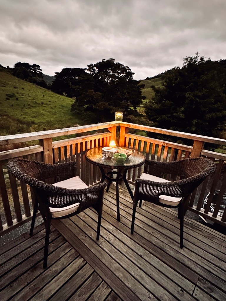 We picked up some stuff for dinner from the supermarket on the way home and cooked up some satay chicken and ate on the balcony as it was a nice warm evening in Puhoi.